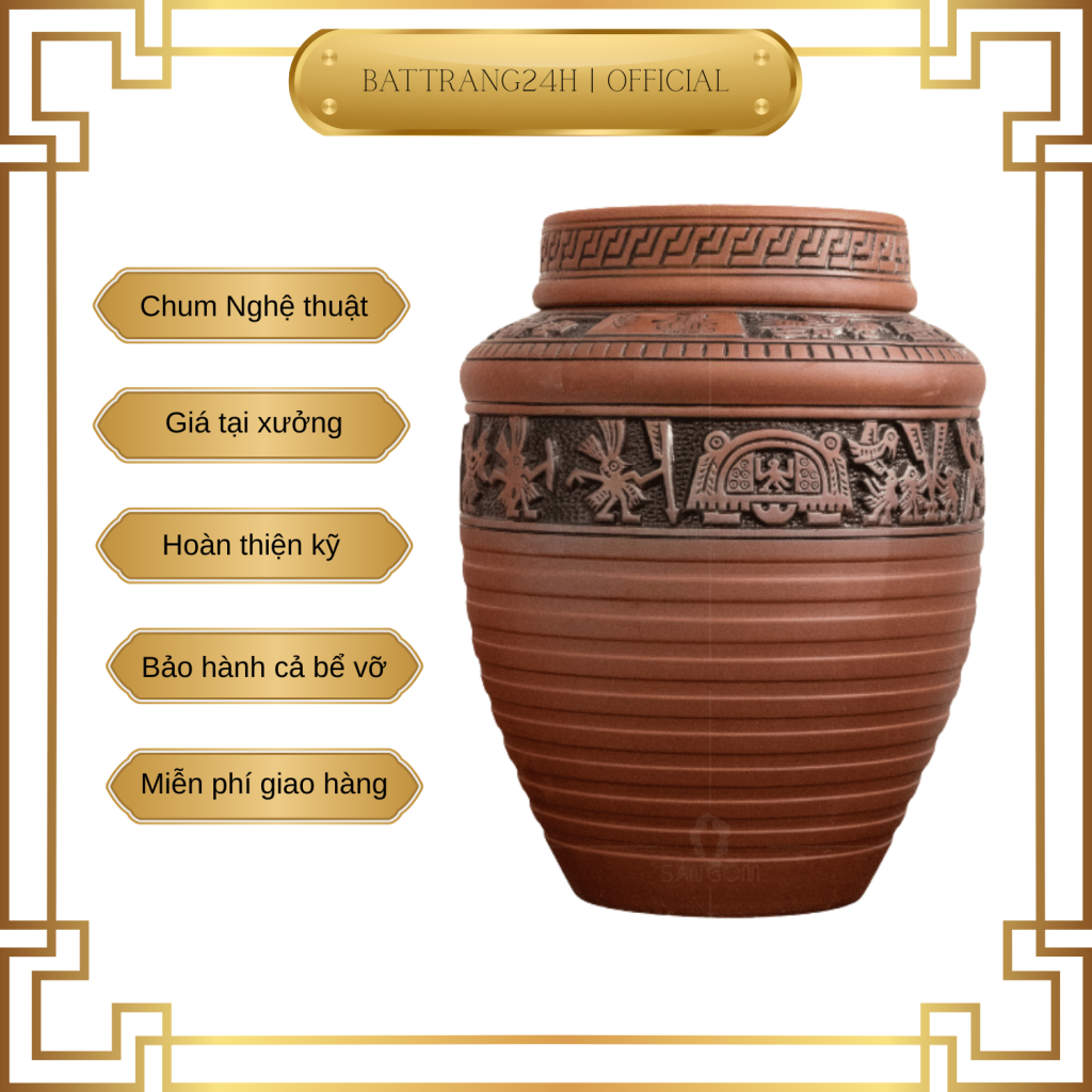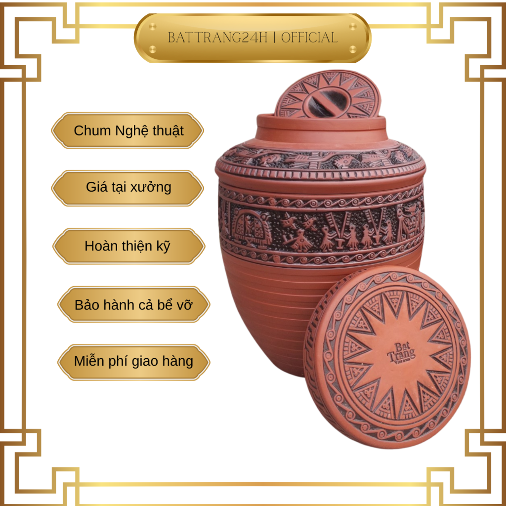 - Tất cả các chum Hoa văn và hoa văn Trống Đồng của Battrang24h đều có 2 lớp nắp đậy tiện dụng và tối đa hóa công năng ngâm ủ R.
